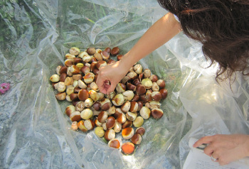 早速、目にも止まらぬ速さで落ちてくる栗を拾う