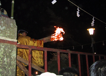 いよいよ、火の神様が松明を持って来て火を付けるところ