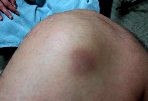 足の膝の内側が痛かったので帰ってから見たら なんと死んでいました??? (里美先生の治療によればこのように青ずみっていることを“死んでいる”と言う)